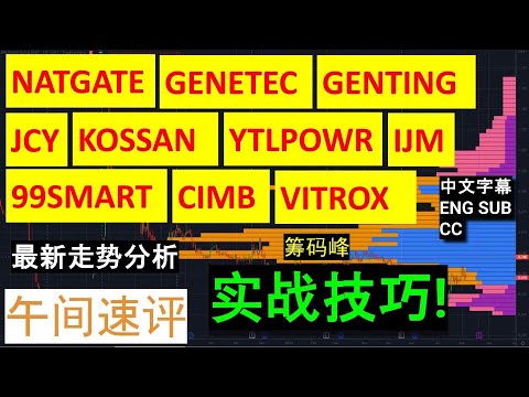 【午间速评】NATGATE GENETEC GENTING JCY KOSSAN YTLPOWR IJM 99SMART CIMB VITROX最新走势实战分析技巧! 筹码峰策略! [中文 ENG]